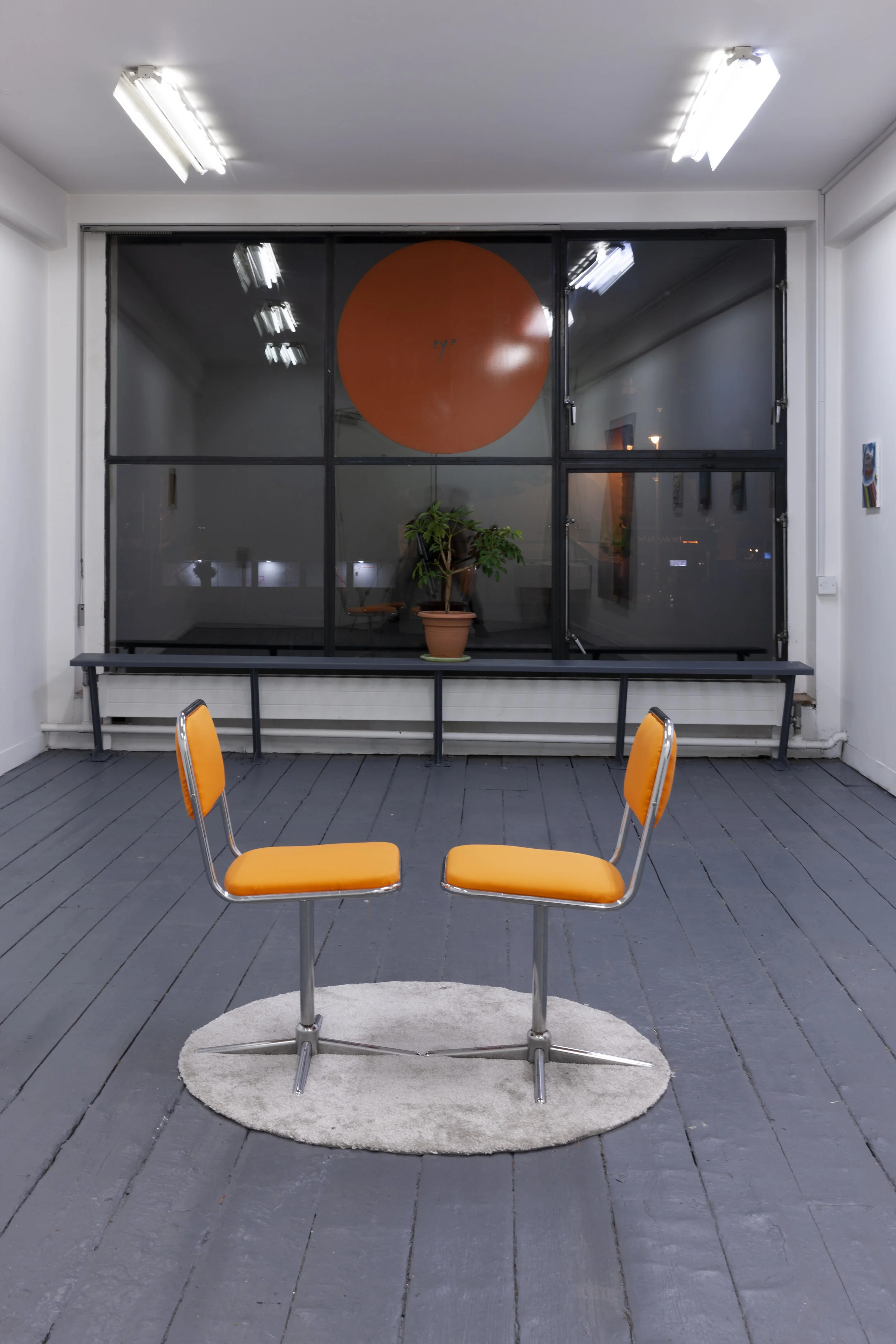 video (20 mins), chair, polyester carpet, polyester wool, cotton strapping, headphones, wood